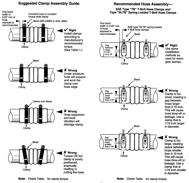 Use Only T-Bolt Clamps. Constant torque T-Bolt Style may help to retain clamp load.